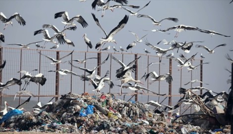 Cigüeñas y gaviotas transportan cientos de kilos de plástico desde los vertederos hasta los humedales de la Bahía de Cádiz