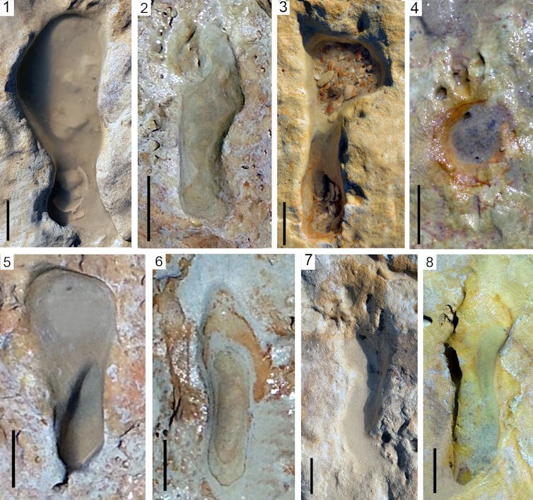 Las pisadas nos muestran una ventana abierta a ciertos momentos de su existencia que han quedado congelados en el tiempo. De este modo, las huellas proporcionan datos inestimables sobre el número de individuos que las realizaron y, sobre todo, de sus características biológicas (estatura, edad, masa corporal, sexo) e incluso biomecánicas (postura, marcha, velocidad).