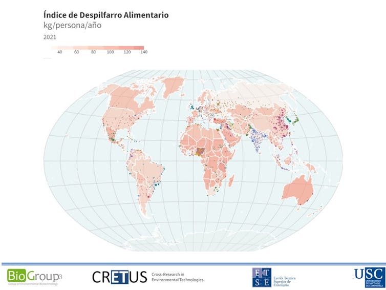 Un informe del Programa de Naciones Unidas para el Medio Ambiente del 2021 situaba el desperdicio promedio en los hogares en 74 kg/persona/año. España presenta un valor superior a esa media mundial anual (77 kg/persona/año), en el rango elevado de los países europeos. La región del mundo con mejor comportamiento es Sudamérica, con valores medios de 70 kg/persona/año.