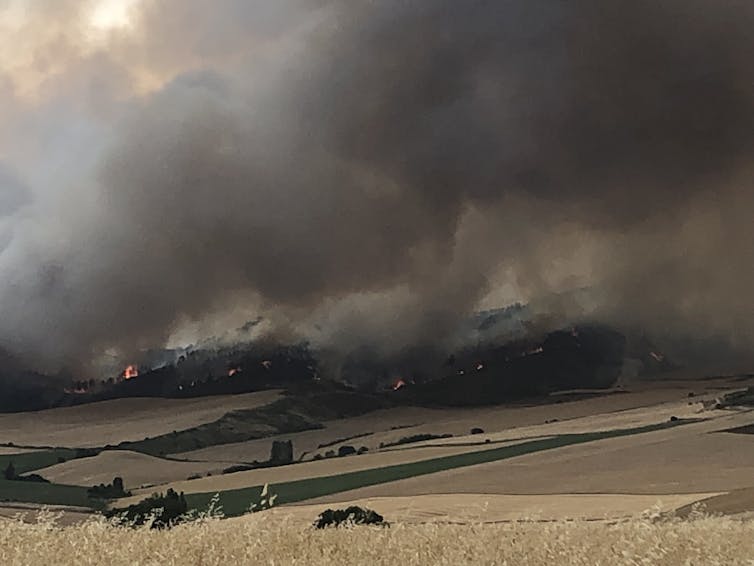Esta ola de calor ha coincido con un cereal ya seco en el campo, y a punto de ser cosechado. Independientemente de una posible ignición del fuego por el trabajo de las cosechadoras, la paja seca en el campo ha favorecido la rápida propagación del fuego.